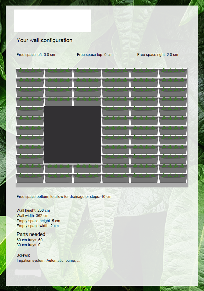 Tool to create a layout for a vertical green wall.