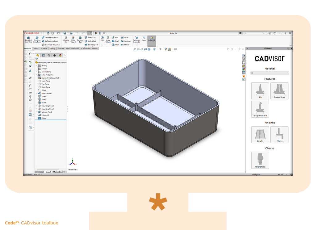 Integrated Engineering guide within SolidWorks, to help create first time right plastic parts.